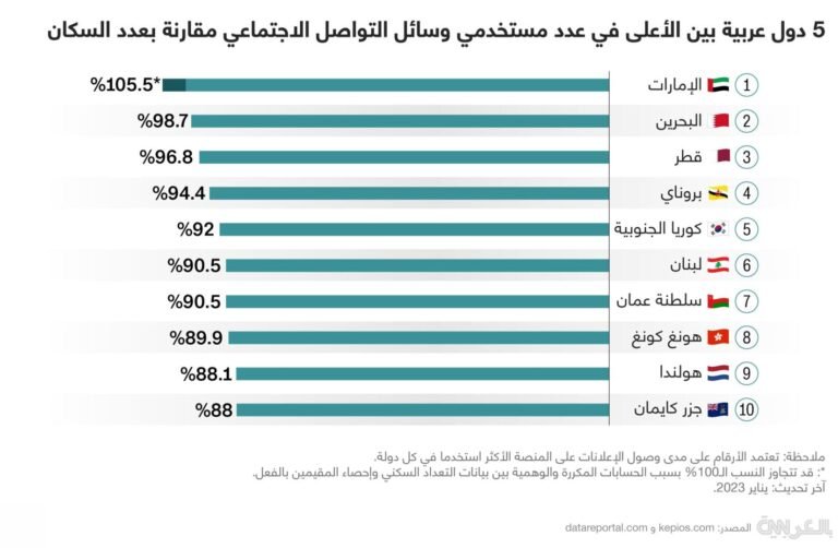 متابعة محمد صادق الشريف حلت 5 دول عربية من ضمن المراكز العشرة الأولى من حيث استخدام شبكات التواصل الاجتماعي، بحسب دراسة نشرتها منصة “داتا ريبورتال”. ولفتت الدراسة إلى أن “الإمارات والبحرين وقطر تتمتع بأعلى مستويات التبني في العالم، وهذا يدل…